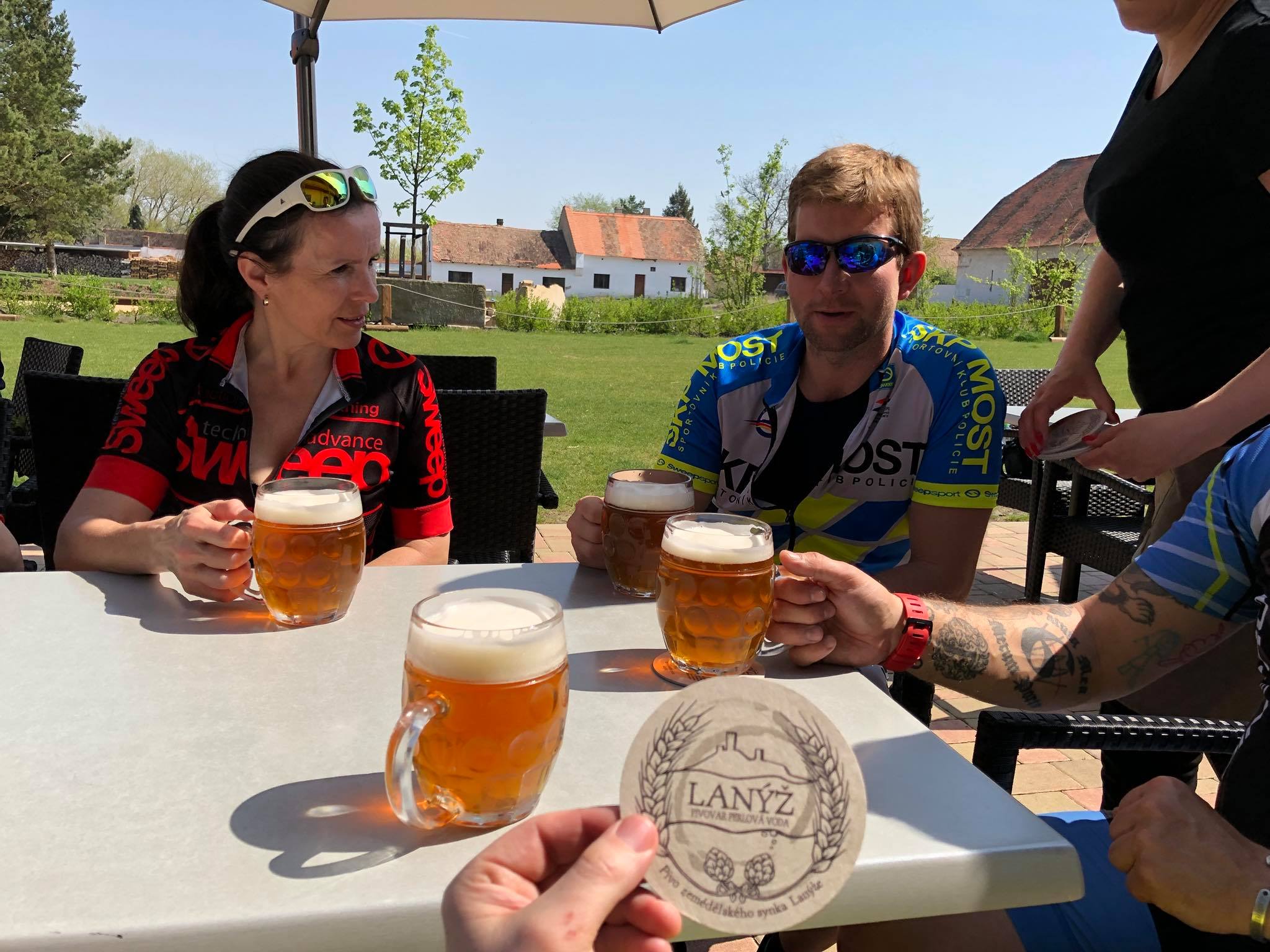 Cestou bylo ale nutné ochutnat pivo Lanýž malého pivovaru Perlová voda a když už byl čas oběda, rovnou jsme otestovali i místní polévky kulajdu a slepičí vývar. Kulajda prý byla super. Po malém občerstvení byla cesta směrována na Budyni nad Ohří. Při výjezdu z areálu jsme zaregistrovali malý nenápadný PUMPTRACK, kde bylo nutné vyzkoušet své technické dovednosti. Dvě piva vám dodají odvahu, zvlášť dvanáctky.