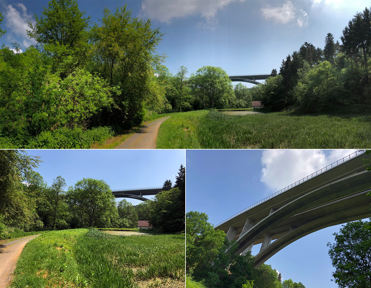 Ve Velemíně se dáte za kostelem doprava a pak už jen po modré. Tam někde totiž začíná Opárenské údolí a táhne se až do Malých Žernosek. Míjíte poslední stavení obce Velemín, nějaké ty chaloupky a proti sobě uvidíte velkolepou stavbu mostu dálnice D8, který celé Opárenské údolí překlenul.