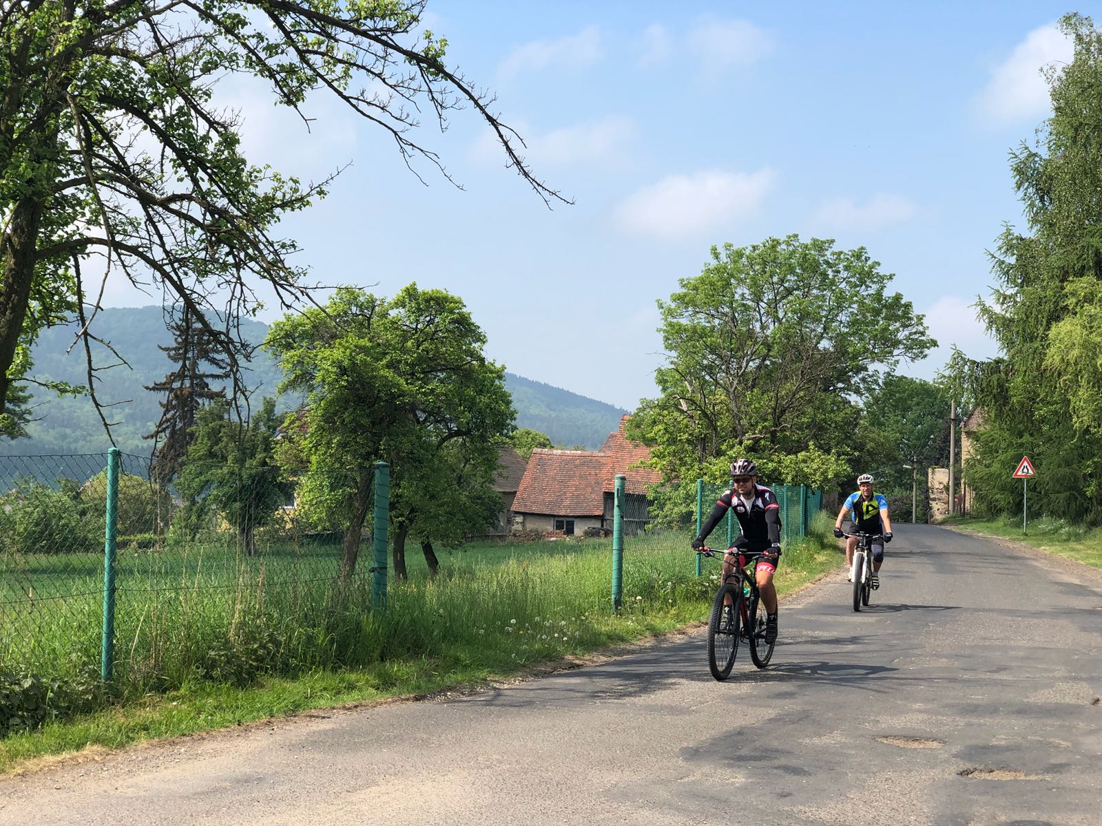 V sobotu 12. května to bylo komornější a tak se v úzké sestavě mohlo vyrazit i do kopečků. Tentokrát byla vybrána 40 kilometrová trasa s cílem poznat přírodní rezervaci Březina. Počasí bylo opět letní. Telefon sice ještě před výjezdem ukazoval kolem 13 hodiny 30% pravděpodobnost bouřky, ta ale nedorazila. První část trasy byla celá do kopce. Až do obce Mrsklesy je náklon přívětivej, ale jak se v obci stočíte směr Lhota, tak už to přestává bejt vtipný :).
