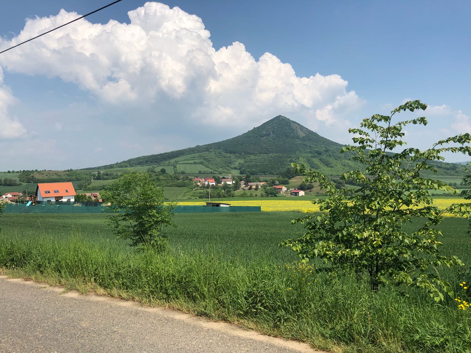 Ze silnice odbočujeme vpravo u obce Bílinka a pokračujeme směr Boreč. Na cestě se ještě zastavíme a uděláme snímek kopce Lovoš a tak se loučíme s Opárenským údolím.