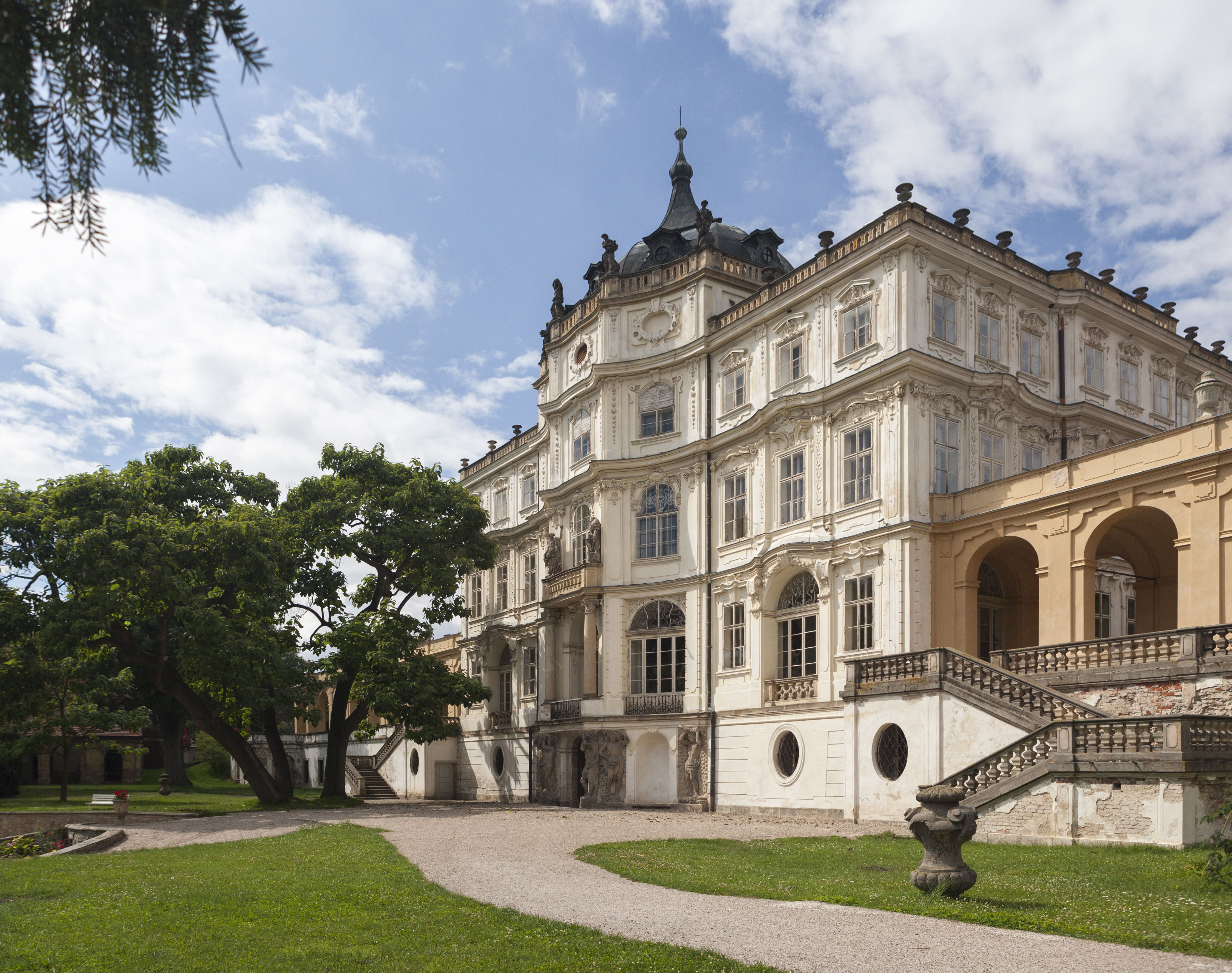 Dnešní čtvercovou dispozici tomuto zámku dal pravděpodobně známý architekt a stavitel Octavio Broggio (1670–1742) v letech 1720 až 1730 patrně z popudu tehdejší majitelky zdejšího panství vévodkyně Anny Marie Františky Toskánské z rodu sasko-lauenburského, manželky toskánského vévody Gastona III.